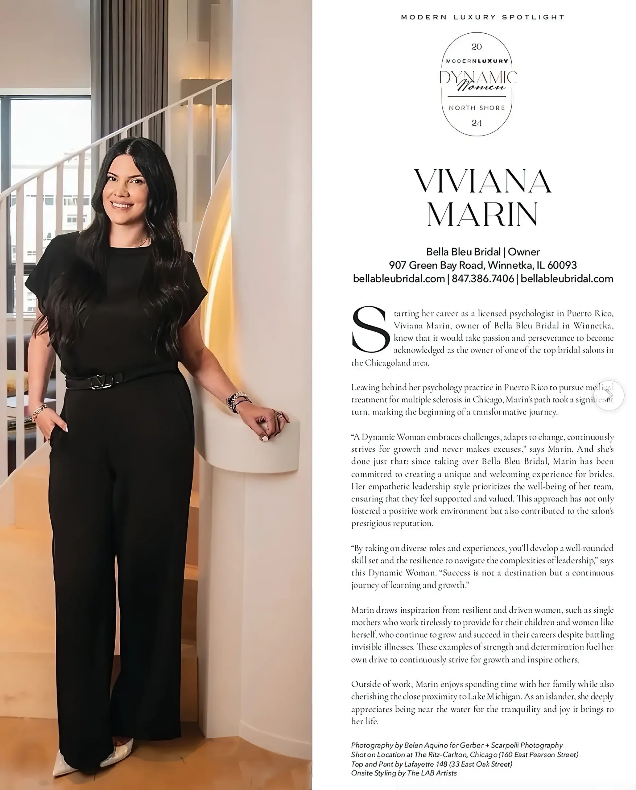 As the owner of Bella Bleu Bridal, I am truly honored to be recognized as a 2024 Dynamic Women in NS Chicago Modern Luxury magazine. It is a privilege to stand alongside some of Chicago’s top female leaders and trendsetters“A Dynamic Woman embraces challenges, adapts to change, continuously strives for growth, and never makes excuses.”I have always remained committed to my core values, prioritizing authenticity and integrity in everything I do. Creating a warm and welcoming experience for brides during the special moment of finding their wedding dress is a top priority for me. It’s a privilege to be a part of such an important journey in a bride’s life 🤍A special thank you to my stellar team at Bella Bleu Bridal. Your hard work, dedication, and positivity make all the difference. And to all our Bella Bleu brides, thank you for your ongoing support and love! 🤍✨