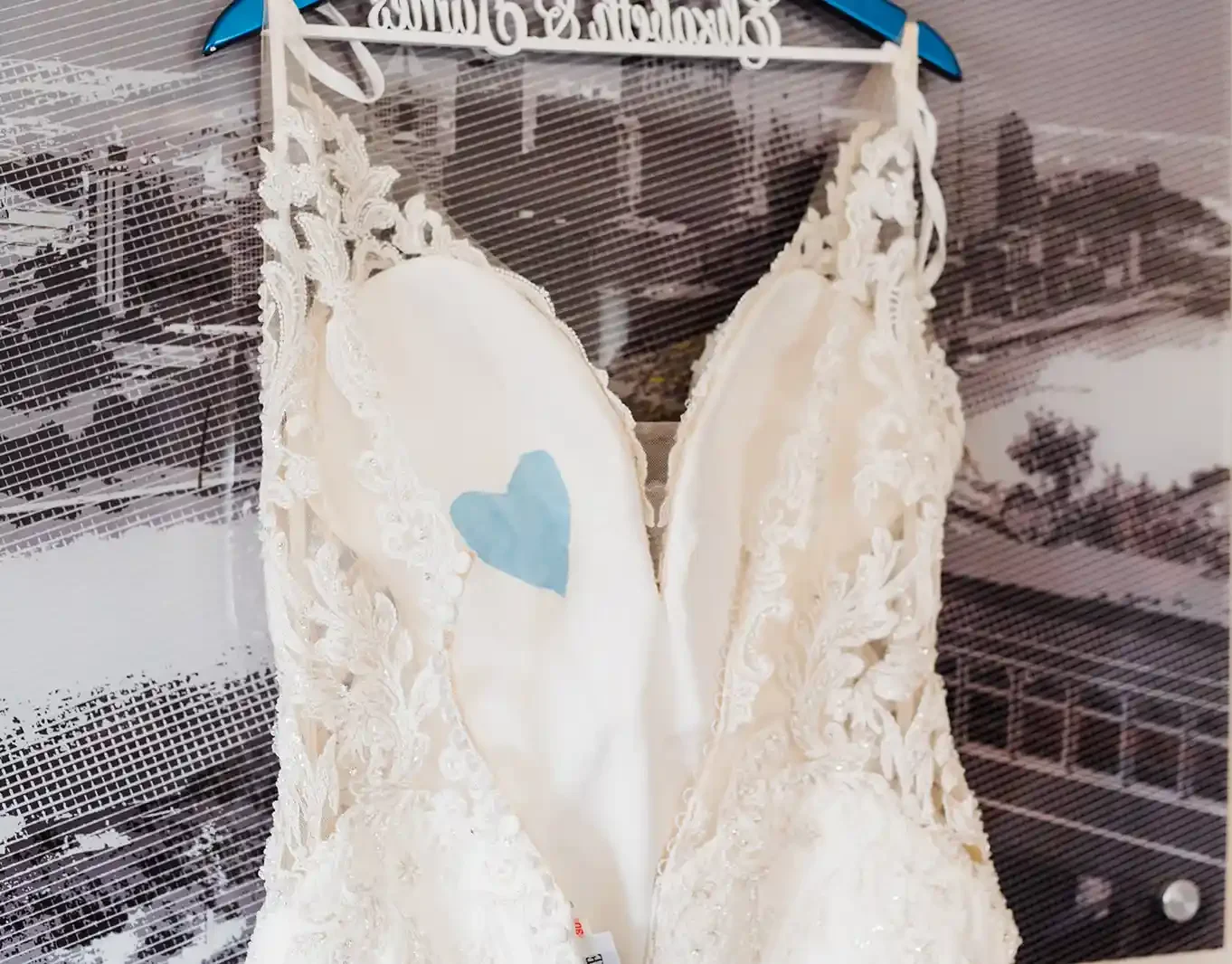 Beth also had her seamstress sew a piece of her late father’s shirt into her dress the shape of a heart, placed near her own heart.
