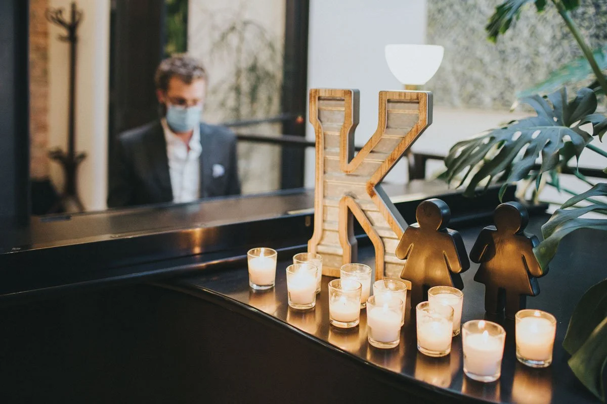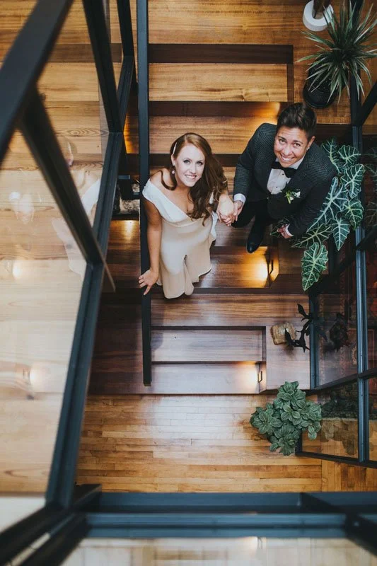 Instead of drastically altering what they’d envisioned for the W, the brides-to-be opted for a whole new venue: The Publishing House, a gem they first stumbled upon during their West Loop wedding walk. As an added bonus, the shift also gave them the chance to invite S Joel Norman – who Casey raves is “the best pianist ever!” – to play at the wedding. The two initially loved the space and musician, but just couldn’t find a way to incorporate them into the original plans.