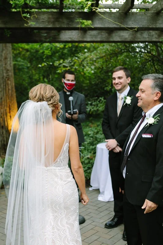 Amy and Kevin had a beautiful outdoor ceremony with fifty of their loved ones in attendance. For those unable to physically be there because of the circumstances, they shared a live video so everyone they cared about could be part of their special day.